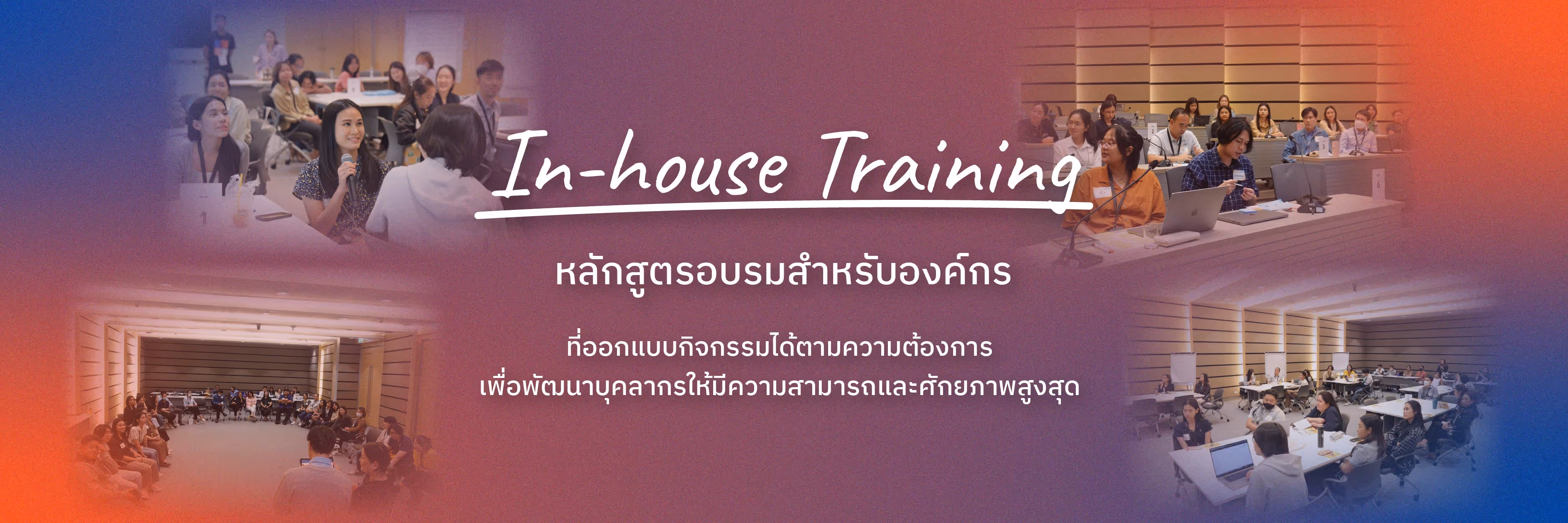 หลักสูตรอบรมสำหรับองค์กร ที่ออกแบบกิจกรรมได้ตามความต้องการ เพื่อพัฒนาบุคลากรให้มีความสามารถและ ศักยภาพสูงสุด