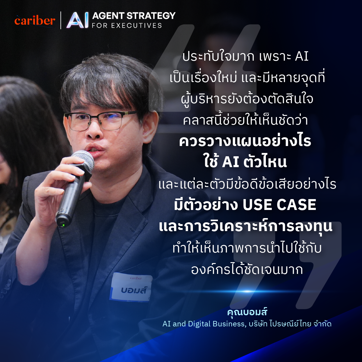 ได้แนวทางในการกำหนดทิศทางการลงทุน เพื่อเปลี่ยน AI Agent ให้เป็นกลไกหลักในการขับเคลื่อนธุรกิจและคว้าโอกาสใหม่ได้ก่อนคู่แข่ง