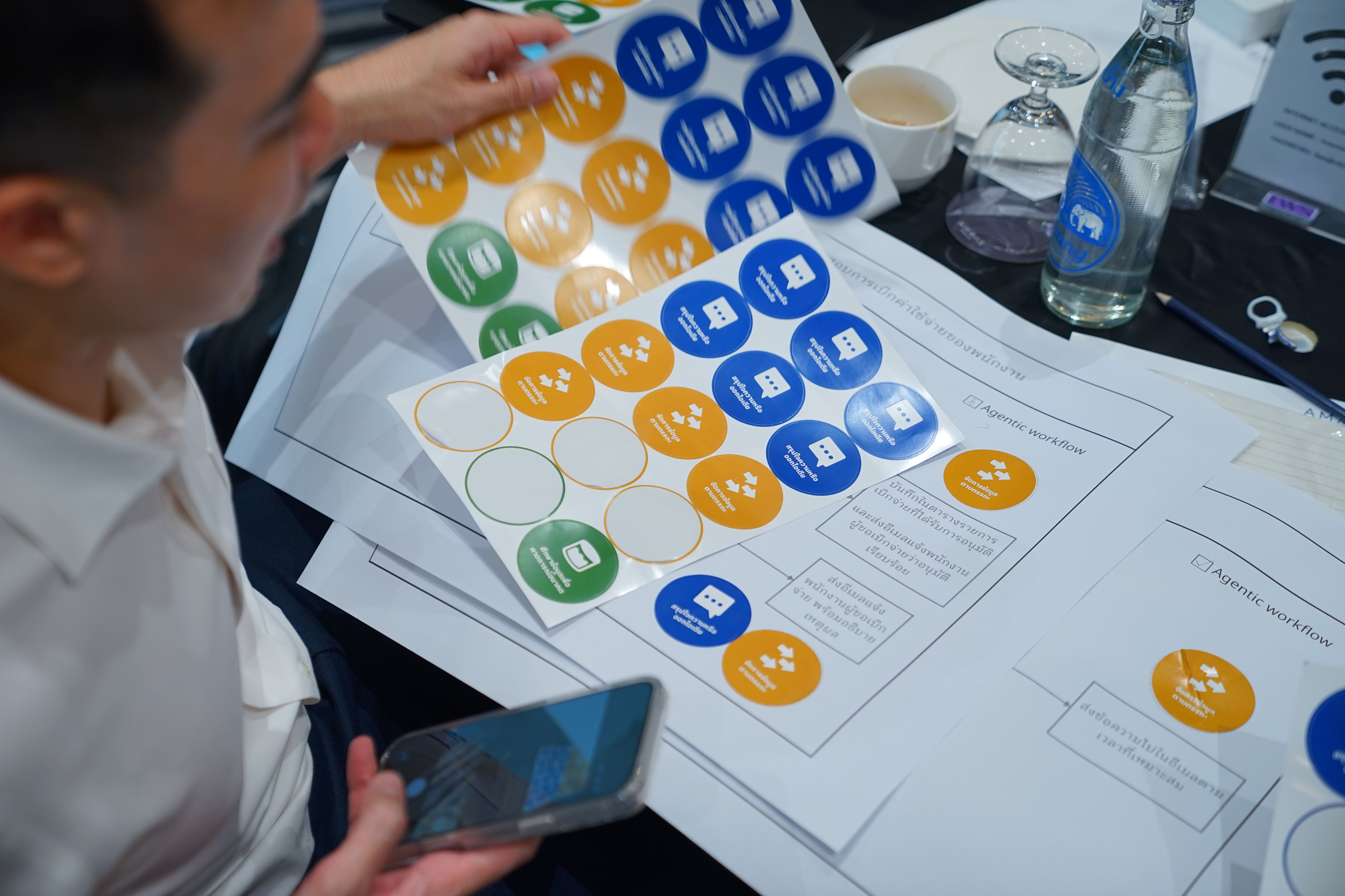 Workshop ทดลองออกแบบกระบวนการทำงานใหม่ที่มี AI Agent เข้ามาเป็นส่วนหนึ่ง เพื่อให้คุณเห็นว่าในกระบวนการทำงานนั้น จำเป็นต้องใช้ใคร เครื่องมืออะไร หรือข้อมูลแบบไหน มาทำงานร่วมกับ AI ได้อย่างไร